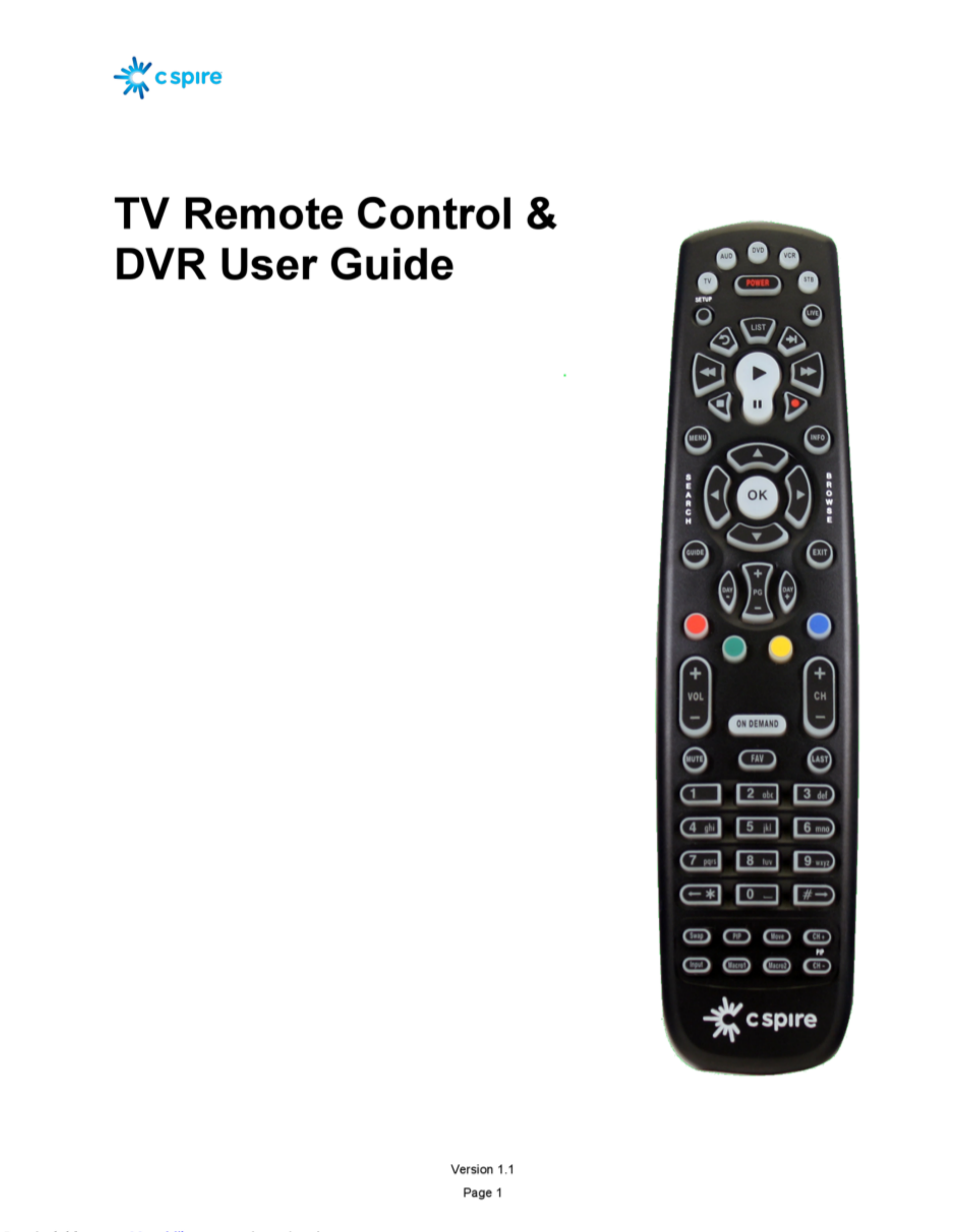 C Spire TV Remote Control & DVR