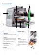 Common details 3 4 1 2 7 1 Touchscreen – LCD display Clearly designed for highest ease of use. 2 USB interfaces 2 USB interfaces on the operation panel, 1 USB interface on the back for memory stick, service key, WLAN, bluetooth, keyboard and scanner. 3 Roll holder The label roll is inserted and centered automatically when Margin Stop is pressed on and locked. 4 Ribbon retainer The stop is adjustable to the foil width.