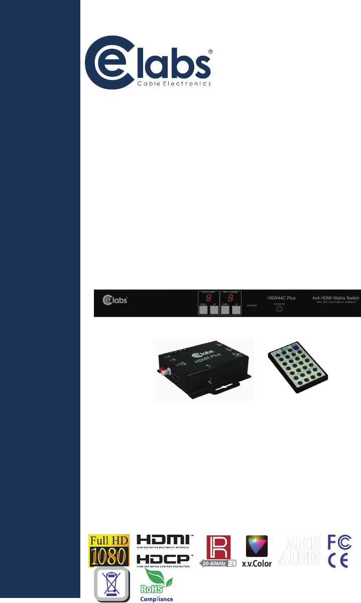 INSTRUCTION MANUAL HSW44C Plus 4x4 HDMI Matrix Switch with CAT5 OUTPUT and up to 60KHz IR 7.