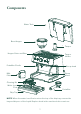 Components Water Tank Bean Hopper Tamper Hopper Rotor and Burr Tamper Holder Portafilter Cradle Group-head Steam Wand Milk Pitcher Cleaning Kit Water Level Float Portafilter Drip Tray NOTE: When the water level float reaches the top of the drip tray, remove the tray and dispose of the liquid. Replace back in the machine before next use.