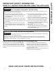 SAFETY INFORMATION IMPORTANT SAFETY INFORMATION READ ALL INSTRUCTIONS BEFORE USING THE APPLIANCE WARNING GENERAL SAFETY INSTRUCTIONS WARNING NEVER use this appliance as a space heater to heat or warm the room. Doing so may result in carbon monoxide poisoning and overheating of the oven. Ŷ 8VH WKLV DSSOLDQFH IRU LWV LQWHQGHG SXUSRVH DV described in this owner’s manual.