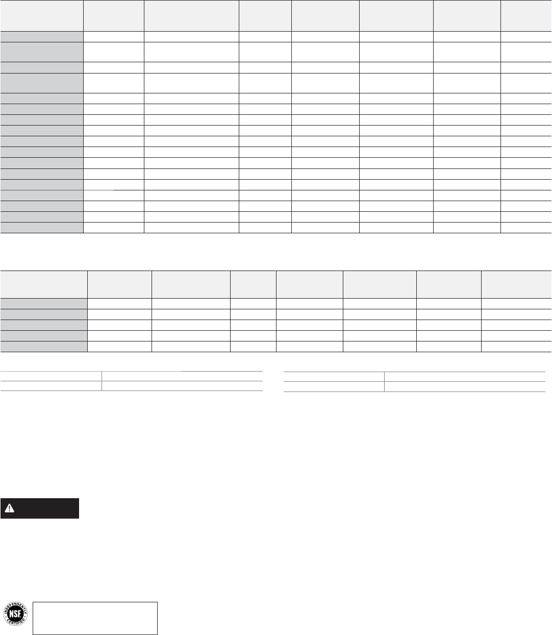 permissible limit for water leaving the system as specified in NSF/ANSI Standard 42 and Standard 53. System tested and certified by NSF