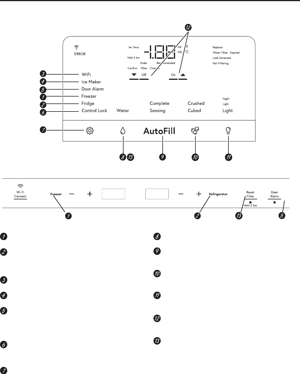 Allume (ON) ou éteint (OFF) la machine à glaçons.