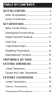 TABLE OF CONTENTS GETTING STARTED ..................................... 6 Order of Operations ................................... 6 Using Parentheses ..................................... 7 KEY DEFINITIONS ....................................... 8 Basic Function Keys................................... 8 Dimensional Function Keys........................ 9 Weight/Volume Functions .........................11 Circle Key ..................................................11 Trigonometric Keys ....................