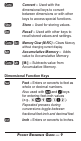 Convert – Used with the dimensional keys to convert between dimensions or with other keys to access special functions. Store – Used for storing values. Recall – Used with other keys to recall stored values and settings. Memory Clear (M-R/C) – Clears Memory without changing current display. Accumulative Memory – Adds value to Accumulative Memory. [M-] – Subtracts value from Accumulative Memory.