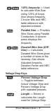 (cont’d) Kw-hr ► Btu — Converts Kw-hr to Btu. BTU to Kilowatt–Hours (Btu ► Kw-hr) — Converts Btu to Kw-hr. Parallel Resistance (Par Res) — Calculates total Resistance of Parallel Resistors. Motor Keys Ind/Sync/DC — Toggles between Motor Types. Motor Horsepower — Enters or calculates Motor Horsepower. Starter Size (Starter) — Displays the Starter Size. Wire Sizing Keys Wire Size/Ampacity — Enters or calculates Wire Size.