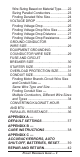 Table of Contents GETTING STARTED........................... 4 KEY DEFINITIONS...................................4 Basic Function Keys ..............................4 Mode Set-up Keys..................................6 Electrical Keys........................................6 Motor Keys..............................................8 Wire Sizing Keys.....................................8 Voltage Drop Keys..................................9 Grounding Conductor Keys...................10 Fuse/Breaker Keys......