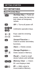 GETTING STARTED KEY DEFINITIONS Basic Function Keys On/Clear Key — Turns on power, clears the last entry and clears all temporary values. Off — Turns all power off. Arithmetic operation keys. - and Keys used for entering numbers. Second Function — Used to access secondary functions. Store — Stores values. - Storage Registers — Store values in Memory. Recall — Used to recall stored values and settings. Memory Clear — Clears M+ and displays total.