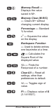 Memory Recall — Displays the value saved in M+. Memory Clear (M-R/C) — Clears M+ without changing current display. Percentage — Standard % function. x 2 — Squares the value on the display. Backspace Function — Used to delete entries one keystroke at a time. ! — Calculates the Square Root of the displayed value. 1/x — Finds the Reciprocal of a number. Clear All — Reset all settings, other than preferences to default. +/– — Toggles sign of value.