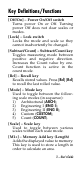 Key Definitions/Functions [Off/On] – Power On/Off switch Turns power On or Off. Turning power Off does not clear scales or modes. [Lock] – Lock switch Locks the mode and scale so they cannot inadvertently be changed. [Subtract/Count] – Subtract/Count key Toggles measuring mode between positive and negative direction. Increases the Count value by one. Count function is active in the count mode. [Rcl] – Recall key Recalls stored values. Press [Rcl] [Rcl] to recall the last rolled value.
