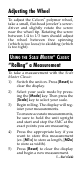 Adjusting the Wheel To adjust the Celcon® polymer wheel, take a small, flat-head jeweler’s screwdriver and slightly rotate the screw near the wheel tip. Rotating the screw between 1 ⁄4 to 1 ⁄ 3 turn should adjust the wheel between free spinning (which is too loose) to skidding (which is too tight). USING THE SCALE MASTER® CLASSIC “Rolling” a Measurement To take a measurement with the Scale Master Classic: 1) Switch the unit on. Press [Reset] to clear the display.