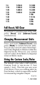 1:5 1:10 1:20 1:25 1:30 1:40 1:50 1:75 1:250.0 1:300.0 1:400.0 1:500.0 1:2,000 1:2,500 1:5,000 1:6,000 1:10k 1:12.5k 1:20k 1:25k 1:50k Full Reset/All Clear To perform a complete reset of the unit, press [Reset] and [Subtract/Count] simultaneously. Changing Measurement Units Press and hold [Subtract/Count] and press [Mode] to switch between units. You can also convert values from Imperial Units (English) to Meters within the Imperial mode.