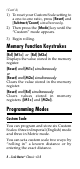(Cont’d) 1) To reset your Custom Scale setting to a one-to-one ratio, press [Reset] and [Subtract/Count] simultaneously. 2) Then press the [Mode] key until the “Custom” mode appears. 3) Begin rolling. Memory Function Keystrokes [Rcl] [M1+] or [Rcl] [M2x] Displays the value stored in the memory register. [Reset] and [M1+] simultaneously or [Reset] and [M2x] simultaneously Clears the value stored in the memory register.