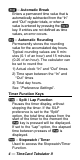 2. Stop and clear the timer: T STOP 0:00:07.1 HR MIN SEC o TMR 0:00:00.0 HR MIN SEC 3. Enter time and start countdown: 2 0 0 T GO 0:02:00.0 HR MIN SEC 4.Stop countdown and exit the timer: T STOP 0:01:55.0 HR MIN SEC oo 0. While the timer is counting, you will see the clock symbol flashing on the bottom left of the display. Storing Time Values KEYSTROKE DISPLAY 1. Access and start timer: T TMR 0:00:00.0 HR MIN T GO 0:00:01.6 HR MIN 2. Freeze timer display: S SPLT 0:00:05.1 HR MIN s1 M-1 0:00:05.1 HR MIN 3.