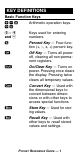 KEY DEFINITIONS Basic Function Keys +–x ÷= Arithmetic operation keys. 0–9 and • Keys used for entering numbers. % Percent Key — Four-function (+, –, x, ÷) percent key. O Off Key — Turns all power off, clearing all non-permanent registers. o On/Clear Key — Turns on power. Pressing once clears the display. Pressing twice clears all temporary values. C Convert Key — Used with the dimensional keys to convert between dimensions or with other keys to access special functions.
