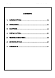 Calyx Kong Hi-Fi Audio Amplifier CONTENTS 1. INTRODUCTION .............................................................3 2. UNPACKING ...................................................................4 3. CAUTIONS ......................................................................4 4. INSTALLATION ..............................................................5 5. TROUBLE-SHOOTING ...................................................6 6. SPECIFICATIONS ...................................................