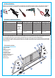 5.2 Tools and materials 5.3 Cable list and minimum thickness Connection Type of cable Length of cable 1 < 10 m Leng. cable 10 < 20 m Leng. cable 20 < 30 m Control panel power supply 230V 3G x 1,5 mm2 3G x 2,5 mm2 3G x 4 mm2 Flashing light 2 x 0,5 mm2 2 x 1 mm2 2 x 1,5 mm2 2 x 0,5 mm2 2 x 0.