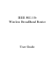 ABOUT THIS GUIDE Congratulations on your purchase of this IEEE 802.11b Wireless Broadband Router. This integrated access device combines Internet gateway functions with wireless LAN and Fast Ethernet switch. It provides a complete solution for Internet surfing and office resources sharing, and it is easy to configure and operate for every users. Purpose This manual discusses how to install the IEEE 802.11b Wireless Broadband Router. Overview of this User’ s Guide Introduction.