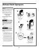 Operating Instructions and Assembly Instructions Airless Paint Sprayers Spraying Instructions (Continued) INTERMITTENT USE If you are spraying and decide to stop for several minutes, lock the spray gun trigger and submerge the tip in a container of water (See Figure on page 8). This will prevent paint from hardening in the tiny spray opening and clogging the tip. Be sure to release the pressure in the system and turn the unit off. CLEARING CLOGS REVERSIBLE TIP: (Included) 1.