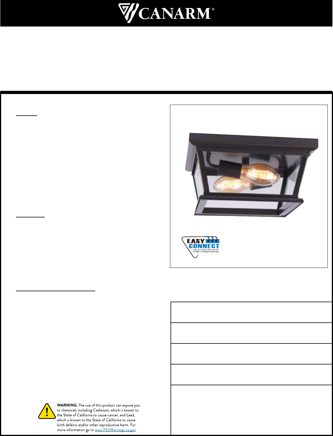 Size of xture: 12” W x 6” H x 12” D