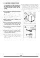 2. WATER CONNECTION l If the dishwasher is connected to new pipes The appliance must be connected to the water mains using new hose-sets. The old hose-sets should not be reused. or to pipes which have not been inuse for a long time run water through for a few minutes before connecting the inlet hose. In this way no deposits of sand or rust will clog up the water inflow filter. l The inlet and drain hoses can be directed to left or right.