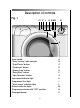 Contents Page Introduction General delivery notes Safety notes Quick start Description of controls Programme Table Programme selector Detergent drawer Detergents, washing aids and amounts to use Useful advice for the user The main wash Cleaning and routine maintenance Investigating malfunctions Technical data Setting up + installation 2 4 4 5 6 12 14 17 18 20 21 23 25 27 28 BEFORE SWITCHING ON THE APPLIANCE MAKE SURE IT IS CORRECTLY INSTALLED AND THAT THE FIXING SCREWS ARE REMOVED AS SHOWN IN PAGE 28.