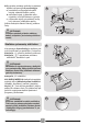 Išlygiuokite prietaisą vertikaliai, sukiodami 8 kojeles kaip parodyta 8 paveikslėlyje: a. pasukdami veržlę pagal laikrodžio rodyklę, atleiskite kojelės varžtą. b. sukiodami kojelę, ją pakelkite arba nuleiskite, kol kojelė atsirems į grindis; c. užfiksuokite kojelę, priverždami veržlę, kol ji atsirems į skalbyklės apačią. Įkiškite skalbyklės kabelio šakutę į elektros lizdą. A B ĮSPĖJIMAS! Prireikus pakeisti prietaiso elektros kabelį, kreipkitės į techninės priežiūros centrą.