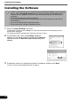 Installing the Software Installing the Software • Do NOT connect the scanner to a computer before installing the software. If you connect the scanner and the Found New Hardware screen appears, unplug the USB cable from the computer and click Cancel. The screen may close automatically when the USB cable is unplugged. • Quit all running applications before installation. • To upgrade from Windows XP to Windows Vista, first uninstall software bundled with the Canon scanner.