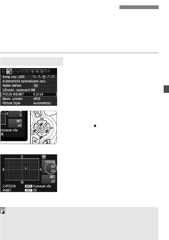 Nastavenou hodnotu vyvážení bílé lze korigovat. Tímto nastavením je