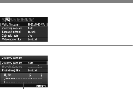 upravte úroveň záznamu zvuku. Sledujte indikátor