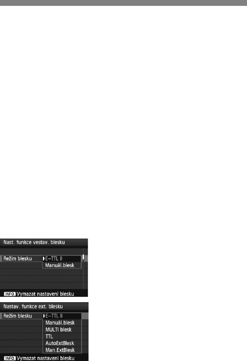 Pokud je k fotoaparátu připojen externí blesk Speedlite, můžete