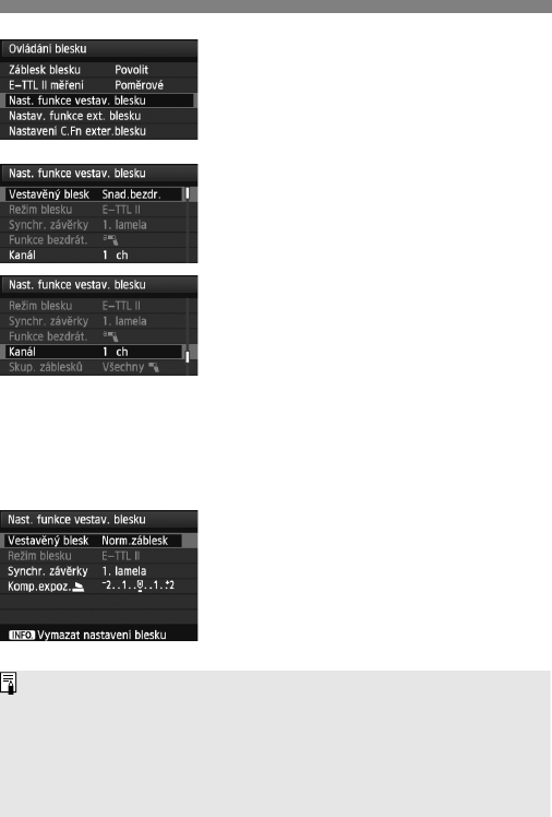 zvestavěného blesku, bude blesk nadále emitovat záblesky pro řízení