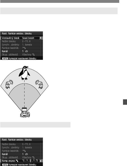 kompenzaci expozice s bleskem, a upravit tak výkon blesku vedlejších jednotek.
