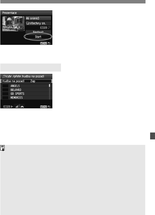 ji stisknutím tlačítka <V>. Poslech hudby na pozadí zastavíte