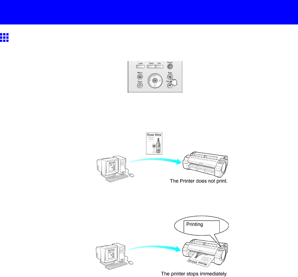When you press the Stop button during printing, printer operation varies depending on the current status.