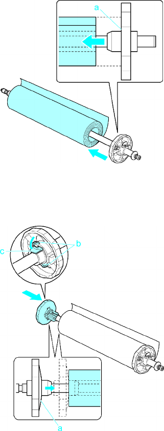 shown (b), push it rmly in until the ange (a) of the Holder Stopper touches the roll. Lock the