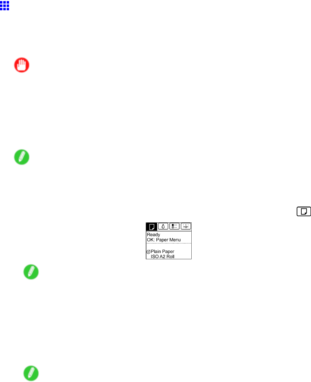 • After you load a roll, the printer automatically shows a menu for selection of the type of paper on the