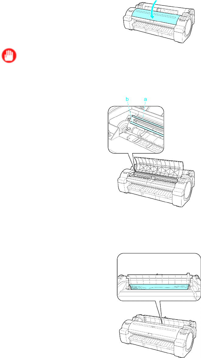 • Do not touch the Linear Scale (a) or Carriage Shaft (b). This may stain your hands and damage