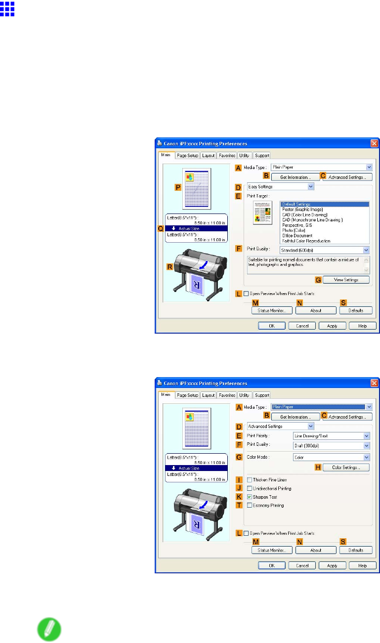 • Options displayed in the F Print Quality list vary depending on the paper type.