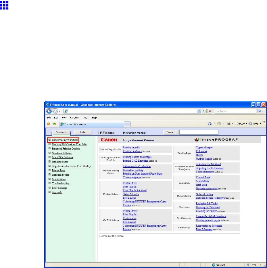 1. Click a section title in the table of contents. Here, Basic Printing W orkow is used as an