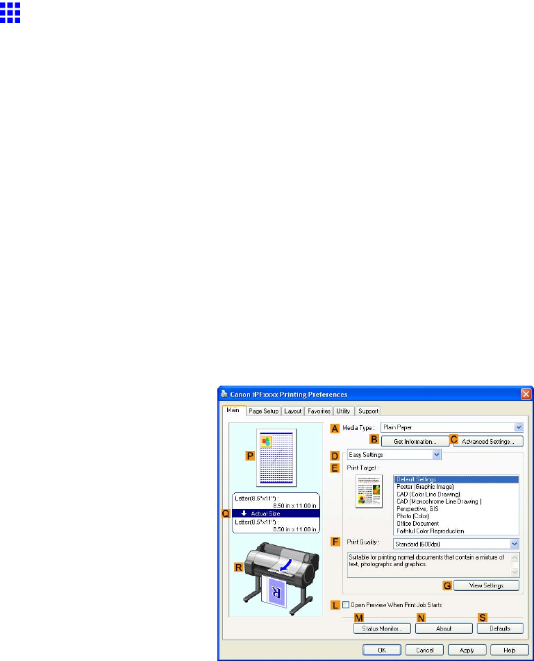 6. After conrming that D Easy Settings is selected, select from the E Print T arget list.