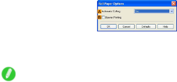 7. Click N Roll Paper Options to display the Roll Paper Options dialog box.