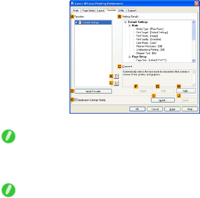 5. Click D Apply Favorite to replace the favorite settings with the current print settings.