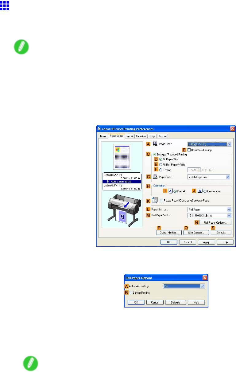 5. Click N Roll Paper Options to display the Roll Paper Options dialog box.