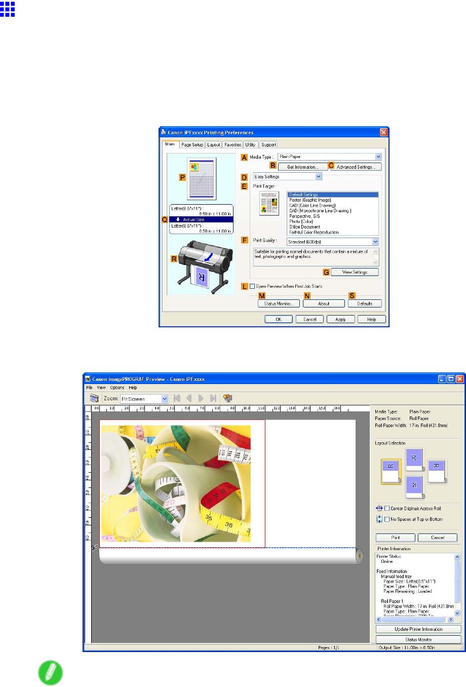 5. After you click OK , when you print a job, the imagePROGRAF Preview window will be displayed.