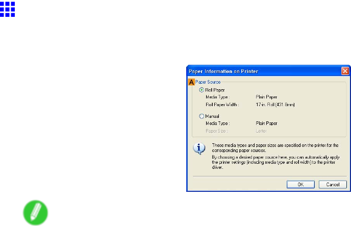 On the Paper Information on Printer dialog box, you can obtain information on the paper in the printer and
