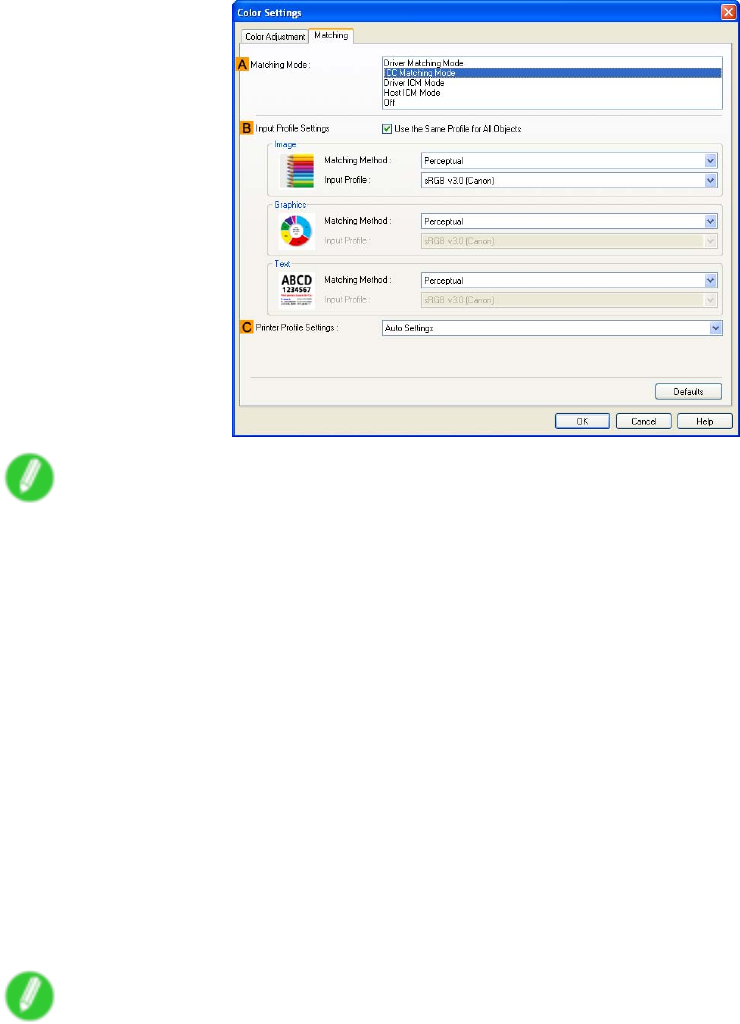 Y ou can select Image , Graphics , or T ext . Y ou can choose Matching Method and Input Prole .