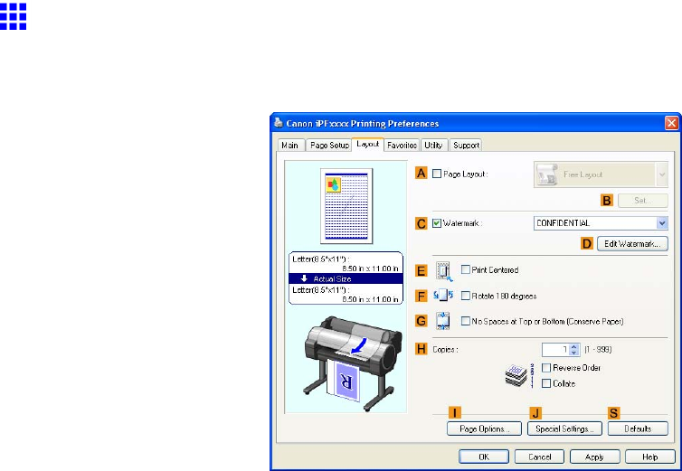 Click to display one of the following dialog boxes depending on the selection in A Page Layout . In these
