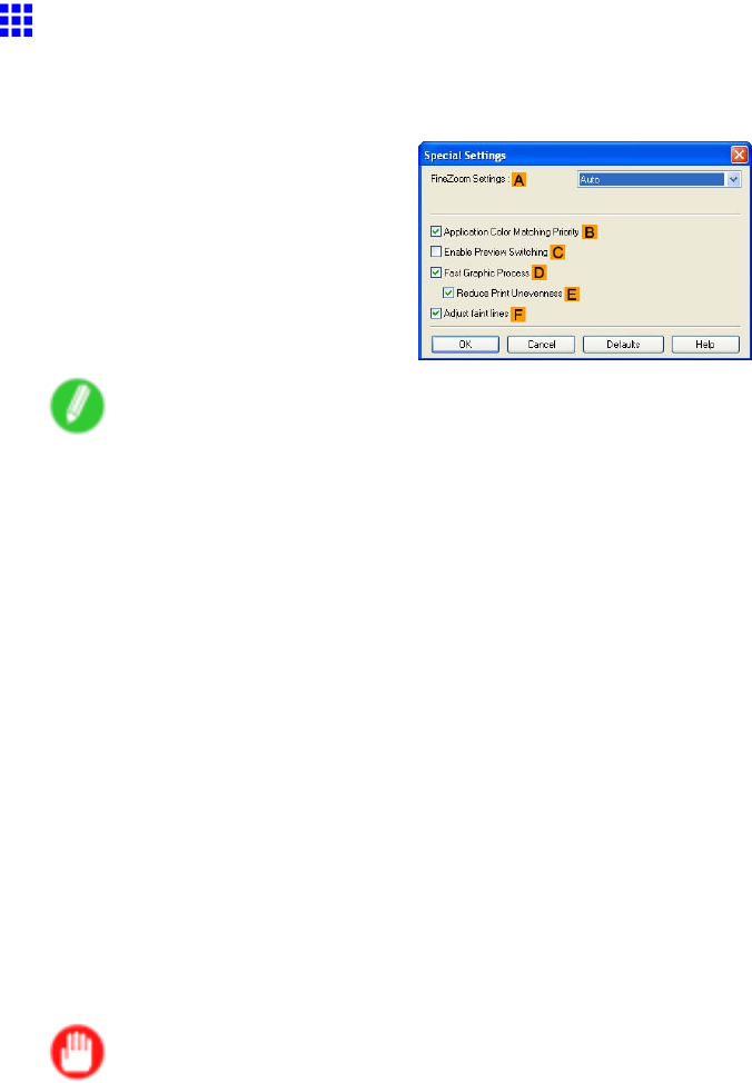 If the printing results are not as you expected, you can change how printing is processed in the Special Settings