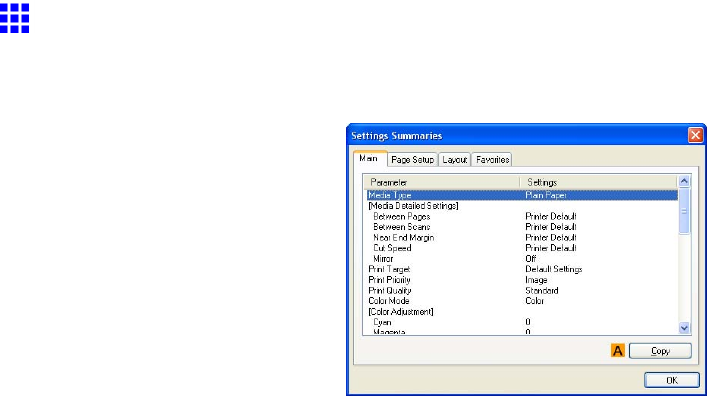 The Settings Summaries dialog box enables you to conrm the settings for the Main , Page Setup , Layout ,